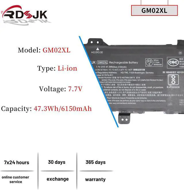 GM02XL Laptop Battery for HP Chromebook 14 G5 11 G6 G7 EE Chromebook X360 11 G1 G2 G3 X360 11 G1 EE 11-AE 11A G6 EE Series HSTNN-DB7X 917679-2C1 917679-271 917725-855 HSTNN-UB7M L42550-541 7.7V 47.3W h