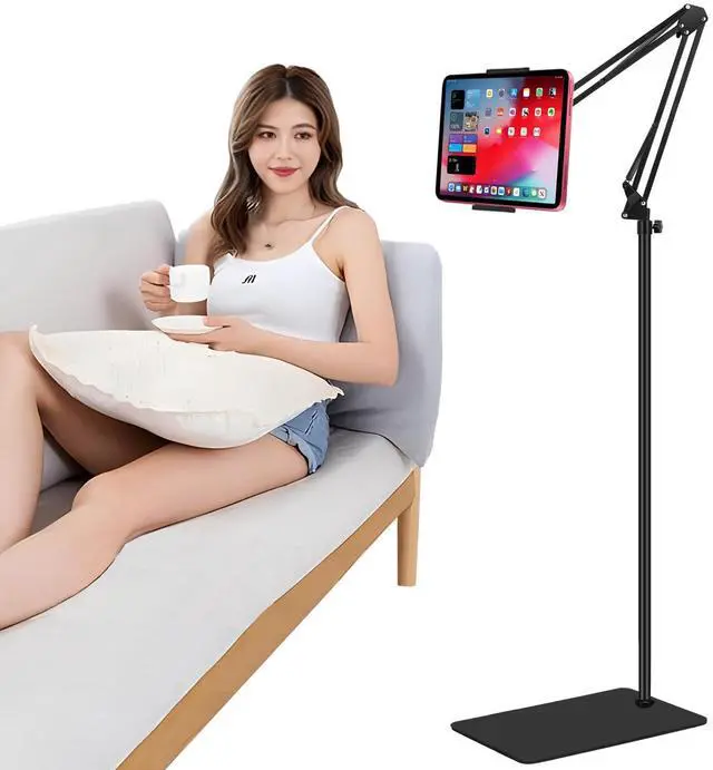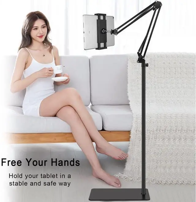 Strong StabilityBased on the pain points of similar products "Very shaky after a period and can't keep a position for your phone/tablet anymore", Weighing 3.75 lb heavy duty base(Length 13 inch and Width 8.3 inch) makes our tablet floor stand more stable and reliable than others.