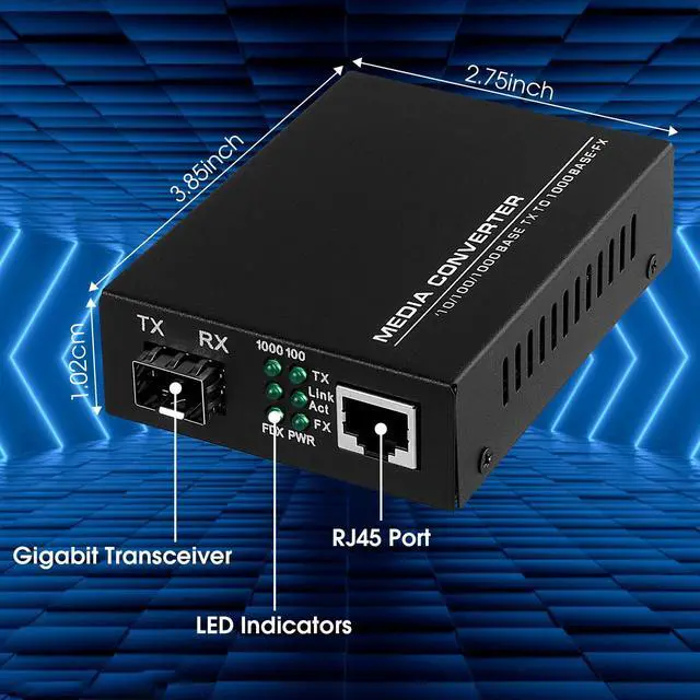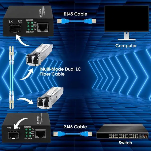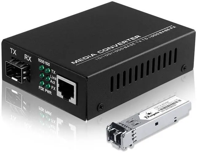 Convert Fiber to Ethernet: This fiber optic to ethernet media converter kit includes a multimode 1000BASE-SX SFP module(850nm), which enable you to convert between 1000BASE-SX LC fiber and 10/100/1000 Base-T RJ-45 copper media.