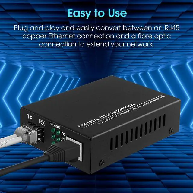 Plug & Play: Simply plug in optical port and RJ45 port, and it will work immediatelly. Status LED's for TX, FX LINK/ACT, POWER, FDX to easily monitor network status. Hot-swappable design makes this ethernet fiber converter easy to install and troubleshoot.