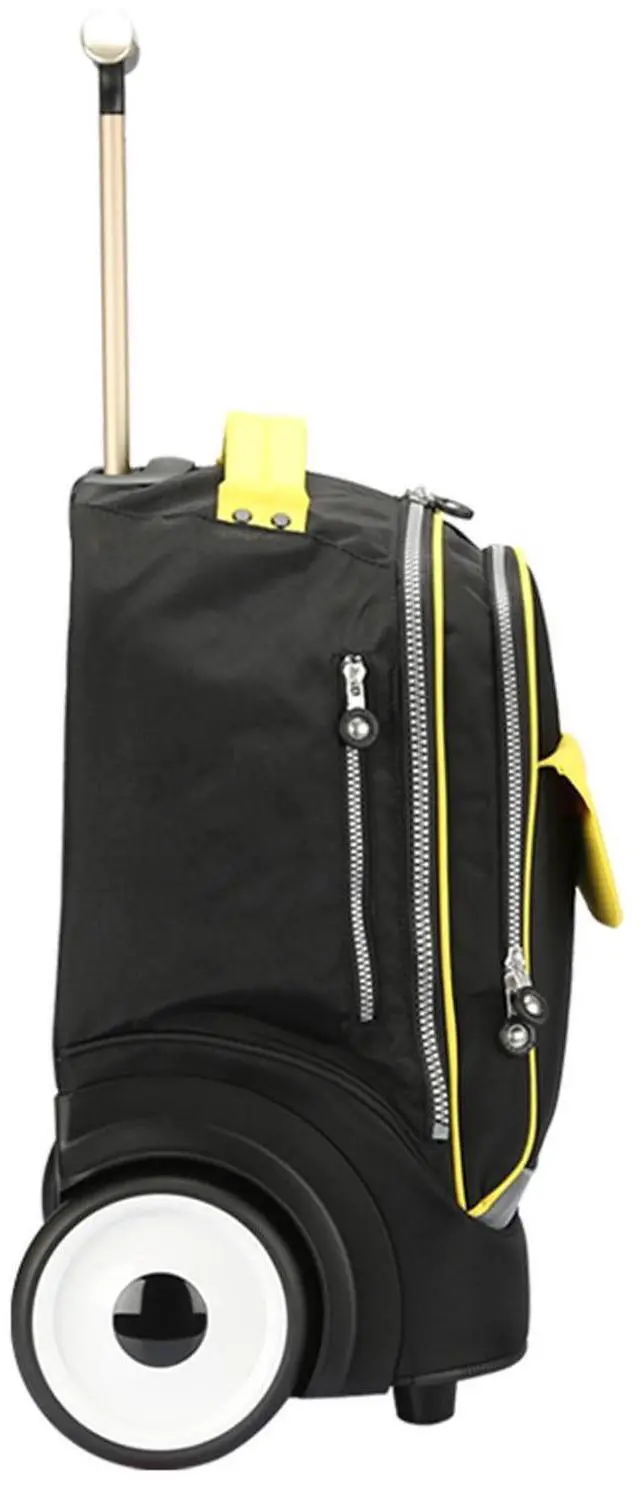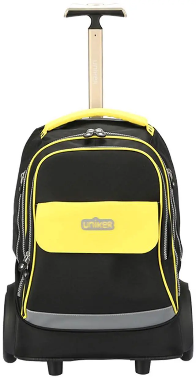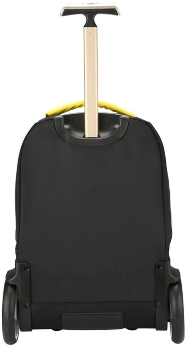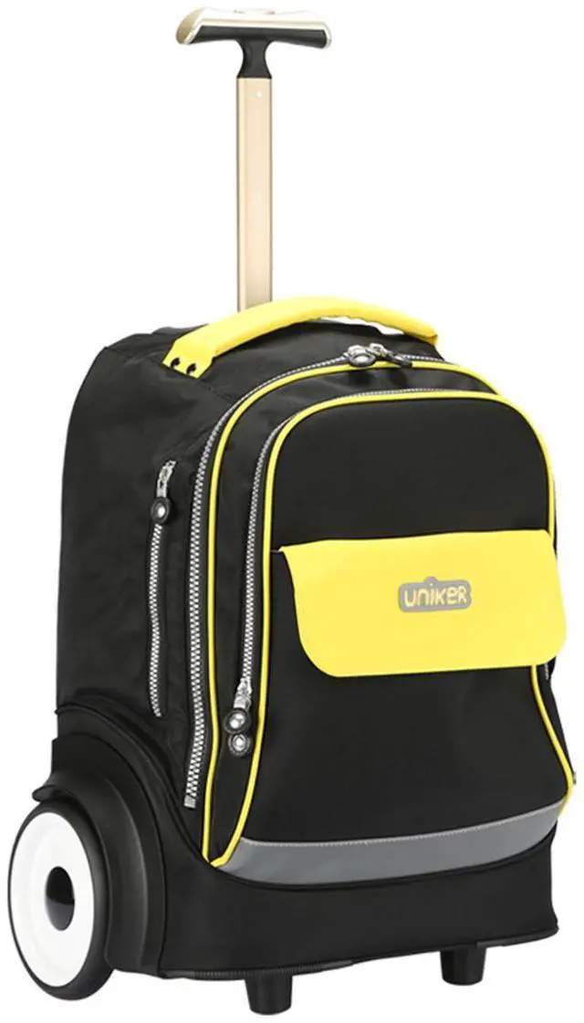 Rolling backpack with large wheels of 6 inches, carring your stuffs and climbing the stairs easily. The laptop padded sleeve can hold 15.6 inch laptop ect. The Large main compartment can collect your, clothes and other stuff.