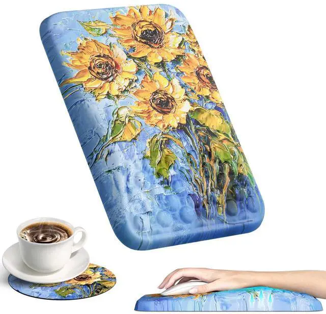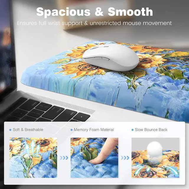 Ospelelf Mouse Pad with Wrist Rest Ergonomic Comfortable Pain Relief Mousepad Wrist Support for Computer Sunflower