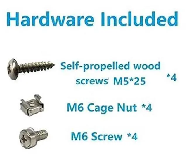Size: 4U Including: 1 x Foldable Vertical Wall Mount Rack 16 x M6 Screws 16 x M6 Cage Nuts 4 x Self-propelled Wood Screws