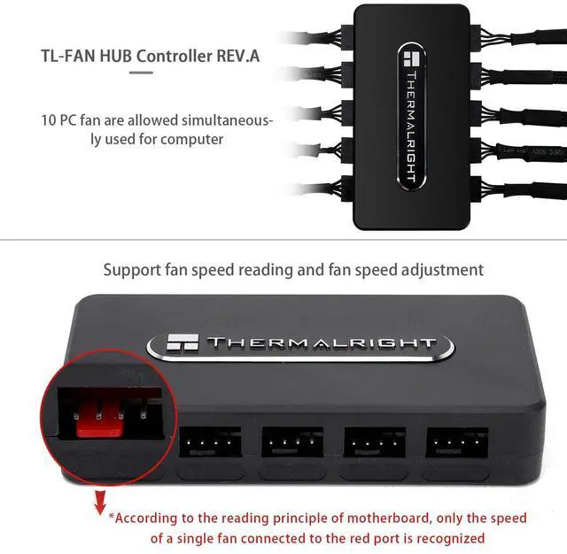 Thermalright Integrated Fan Hub, 10-Port 4 Pin PC Fan Controller, 12V Fan Hub, Support up to 10 Fans, SATA Power Cord Direct Input