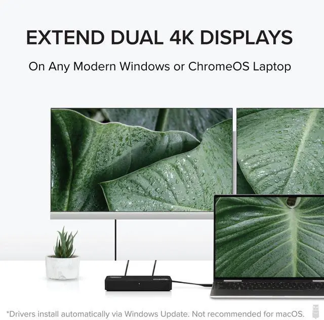 Dual 4K Monitors For Windows & ChromeOS: Equipped with USB to DisplayPort and HDMI outputs, this adapter enables connection to two 4K monitors (3840x2160 @ 60Hz) or lower resolutions like 1080p. DisplayLink driver auto-installs via Windows Update, no manual download for most users. Designed for Windows and ChromeOS only - not recommended for macOS, including M1/M2 systems.