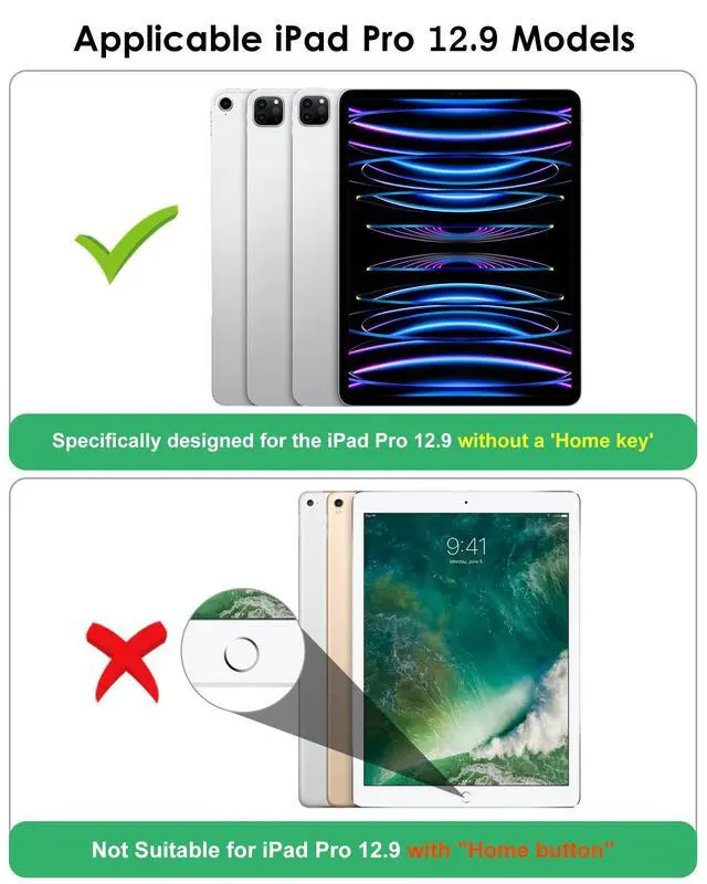 Compatibility ModelThis Kickstand Protective Case is compatible with Apple iPad Pro 12.9 inch 6th / 5th / 4th / 3rd Generation model:A2764/A2437/A2766/A2436/A2378/A2461/A2379/A2462/A2229/A2069/A2232/A2233/A1876/A2014/A1895/A1983(2022/2021/2020/2018 released),Not compatible with any other iPad devices.