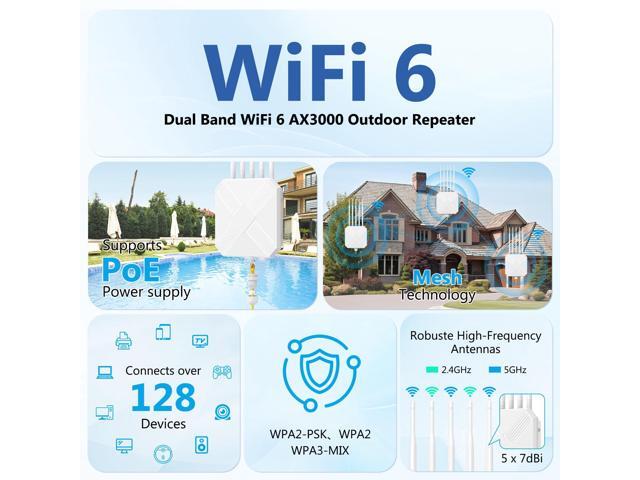 - Dominate Long-Range CoverageUpgraded with 5 high-gain omnidirectional antennas and 5 built-in power amplifiers, this extender blankets areas up to 200300 meters (radius) with rock-solid WiFi. Connect up to 128 devices simultaneously, backed by a Gigabit Ethernet port for 1000/100/10Mbps speeds.
