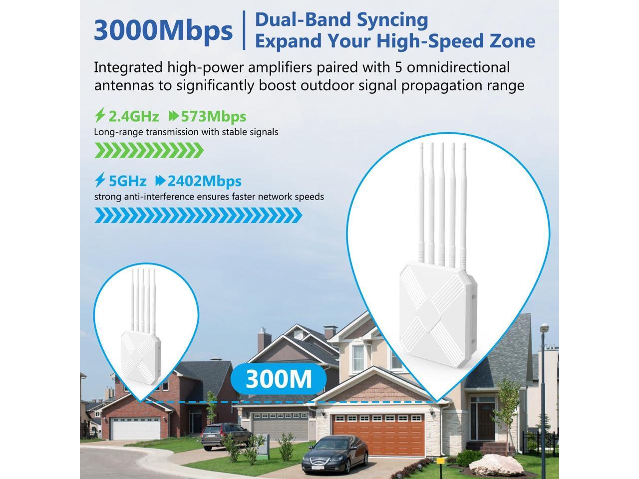 - Experience True Wireless AX3000 WiFi 6 SpeedsUnleash next-gen connectivity with IEEE 802.11 ax/ac/a/b/g/n standards. Dual-band performance delivers blazing-fast speeds up to 2402Mbps on 5GHz and 573Mbps on 2.4GHz, minimizing interference for lightning-quick streaming, gaming, and browsing. Fully compatible with Starlink routers, modems, and WiFi extenders.
