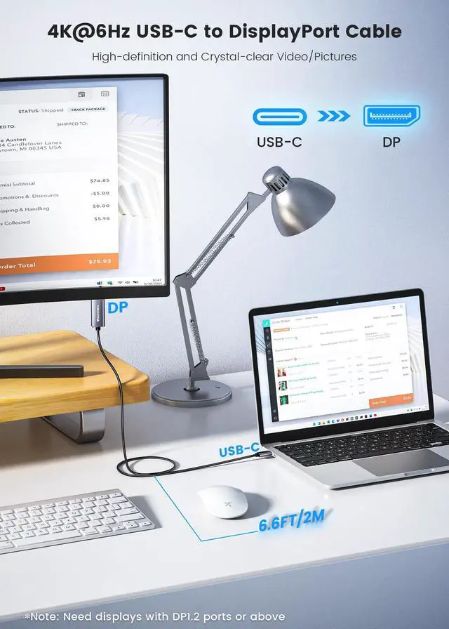 FOINNEX USB-C to DisplayPort 6.6FT, USB Type-C to Display Port Cable, 4K@60Hz USB C to DP Cord Compatible with 2k@144Hz for MacBook Pro/Air, iPad Pro, iMac, Surface, Galaxy