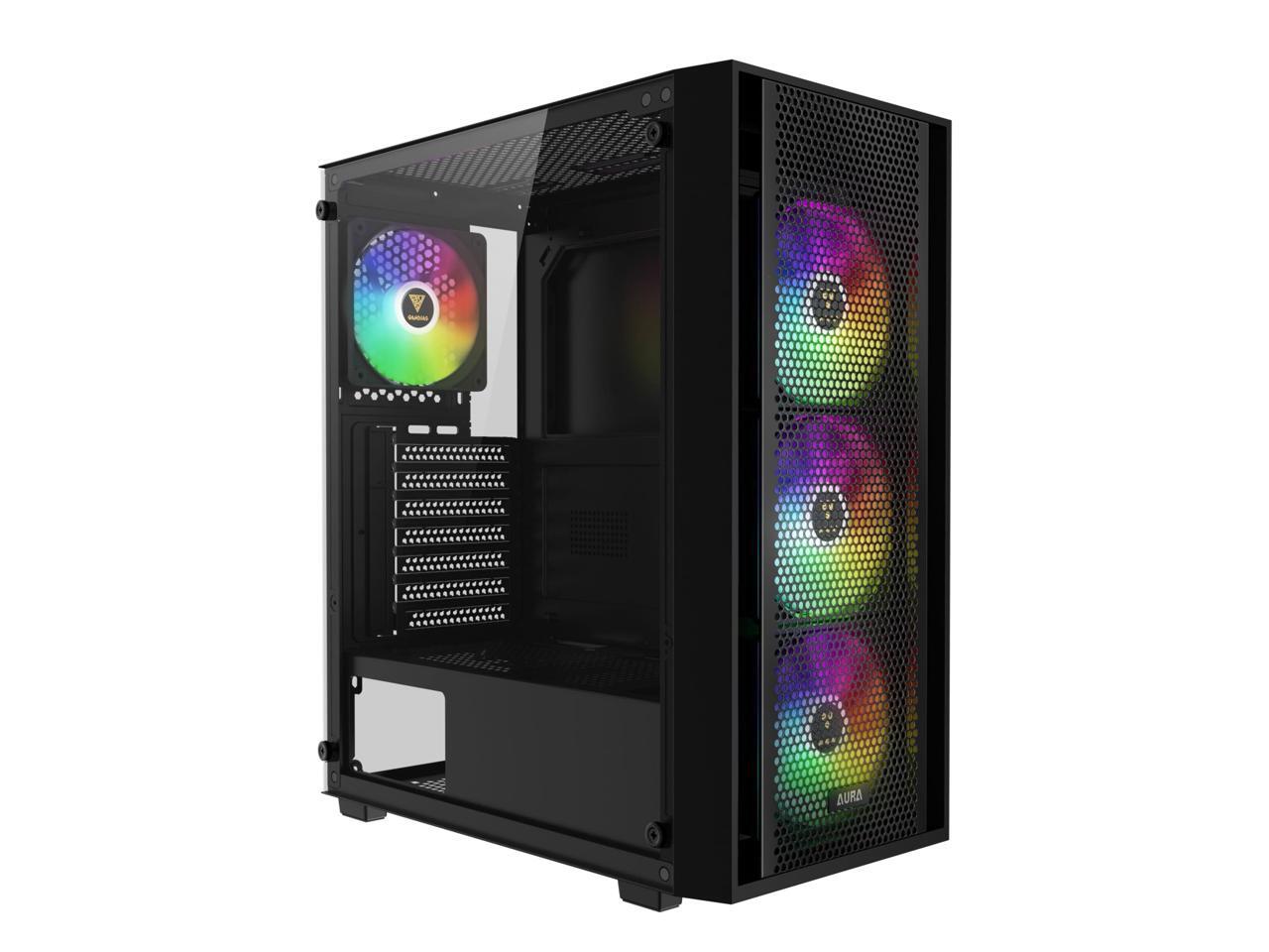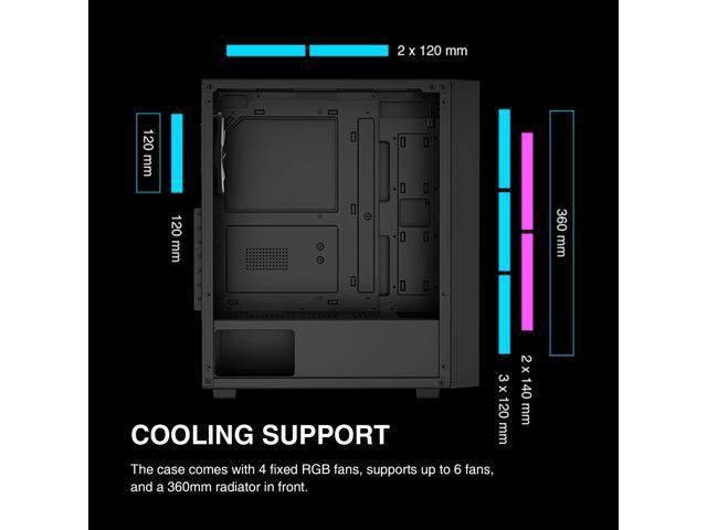 Sleek Design & RGB Gaming Case: The ATX case comes with a chamfered black perforated front panel equipped with 4 ARGB fans to provide superior air intake and offer clean RGB outlook.