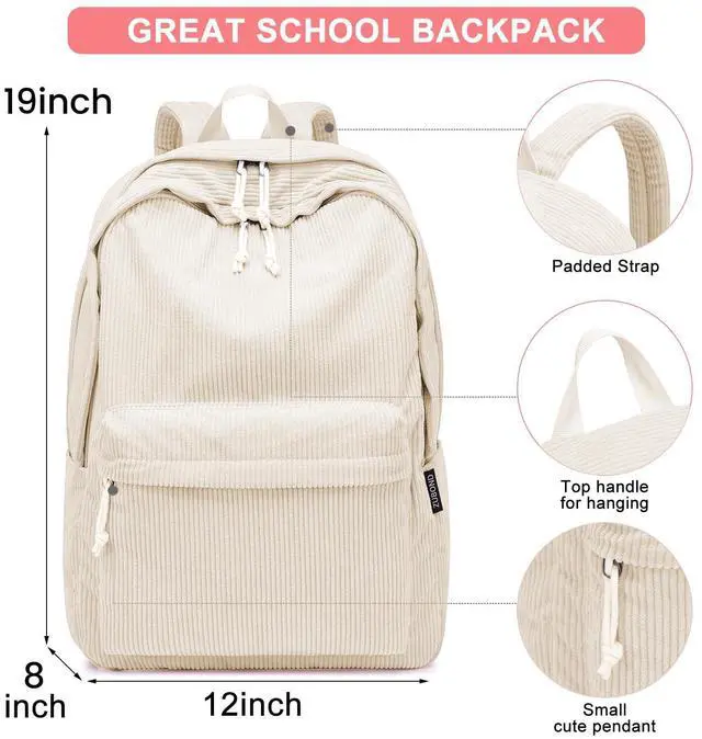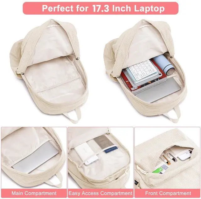 Spacious Corduroy Backpack for School & College: Perfectly sized (19x12x8) to fit a 17.3 laptop, textbooks, binders, and daily essentialsideal for middle school, high school, college students, and professionals.Roomy main compartment with a dedicated padded laptop sleeve for secure storage.