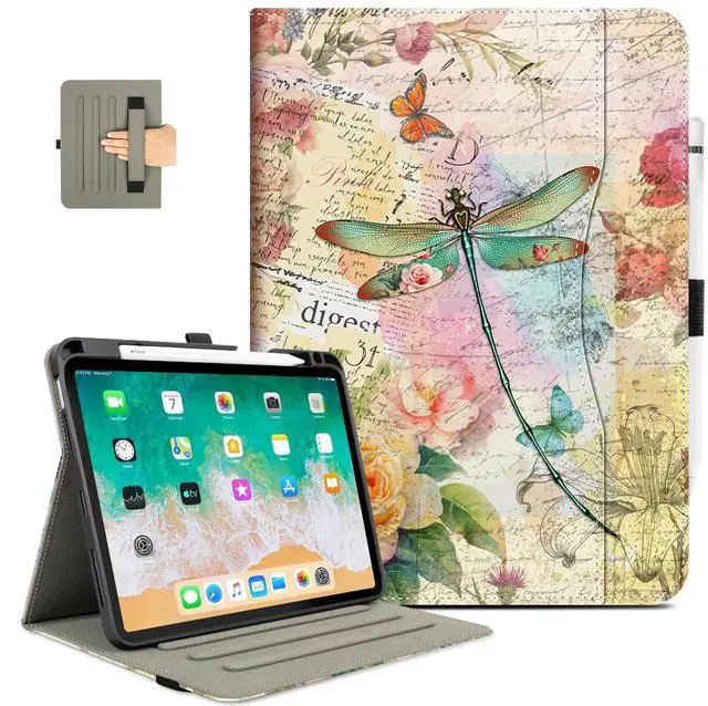 Vimorco Leather Case for iPad Air 4th/5th 10.9, for iPad Air 11 6th M2, for iPad Pro 11 inch 4th/3rd/2nd/1st Generation, Pencil Holder&Handle&Pocket, Multiple Stand Protector,Auto Wake/Sleep,Dragonfly