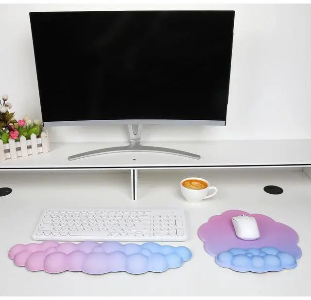 Cloud Mouse Pad with Wrist Rest Cute Purple Pink Memory Foam Relieves Wrist Fatigue ComfortableSweet Wrist Rest&Mouse Pad