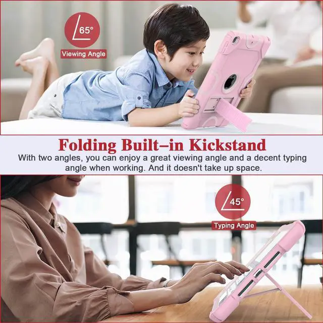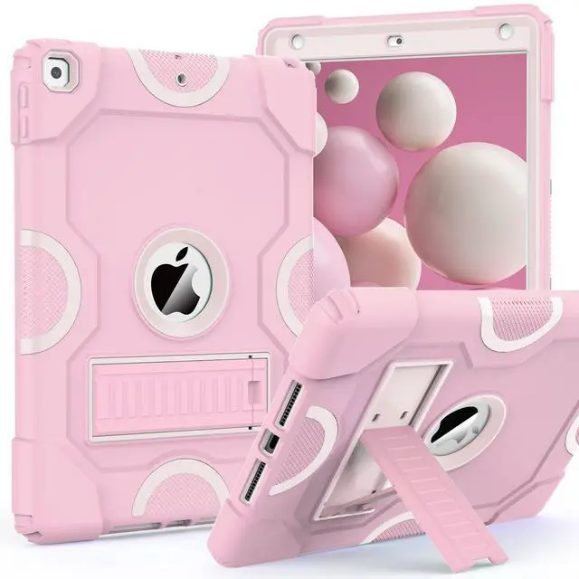 ZoneFoker for iPad 9th Generation Case, iPad 8th 7th Generation Case, iPad 10.2 Inch 2021/2020/2019 Case, Heavy Duty Rugged Shockproof Protective Cover with Kickstand for Girls Woman Pink