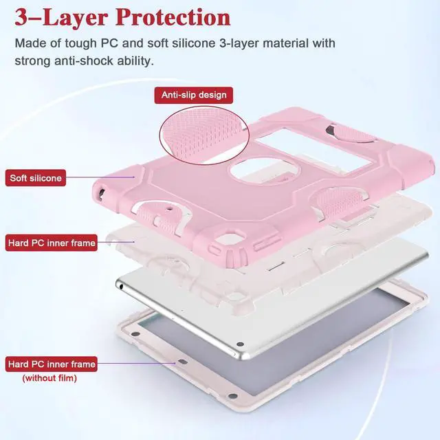 Shockproof Rugged Design: iPad 10.2 Case made of durable Hard PC+Silicone, 3-layer Full Body protection structure, provide a perfect protection, protects your iPad 9th/ 8th/ 7th Generation from scratches and accidental drops, bumps and impacts