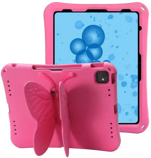 Tading Butterfly Kids Case for iPad Air 13 Inch M3/M2 (2025/2024), iPad Pro 13 (M4) 2024, iPad Pro 12.9 (2022/2021/2020/2018), 3D Cartoon EVA Foam Shockproof Stand Cover for Girls - Magenta