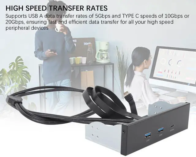 2. DOUBLE USB A AND TYPE C PORTS: The panel includes 2 USB A and 1 TYPE C port, providing a range of connectivity options to meet various device needs with convenient access right at the front of your PC