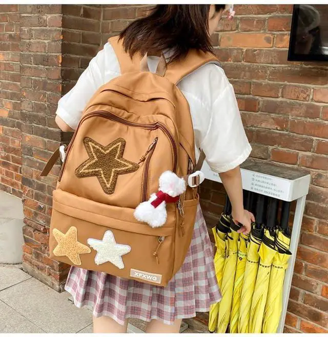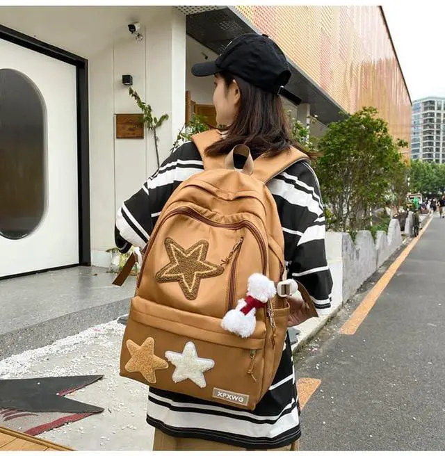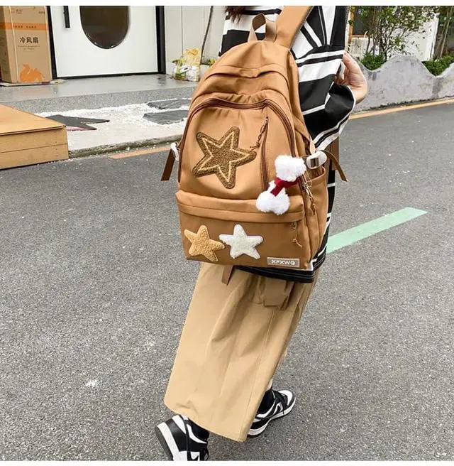 MININAI Y2k Backpack with Kawaii Pendant Aesthetic Star Backpack Cute Preppy Laptop Book Bag Back to College Supplie (Caramel, One Size)