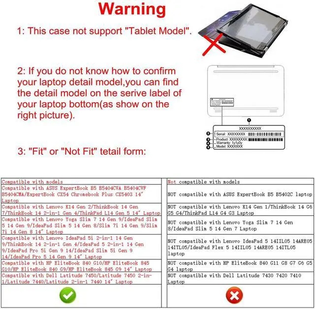 Warning: NOT compatible with HP EliteBook 840 G8 G7 G6/EliteBook 845 G8 G7 G6 and NOT compatible with HP ZBook Firefly 14 G9 G8 G7/Dragonfly G4 and NOT compatible with HP Elite x360 1040 G8 G7 G6/EliteBook 1040 G4 and NOT compatible with Dell Latitude 7430 7420 7410 and NOT compatible with Lenovo IdeaPad Flex 5 14IIL05 14ARE05 14ITL05/IdeaPad Flex 5i Chromebook 14 laptop {{Warning:Most of returned because of choosing wrong model,please confrim your laptop model}}.