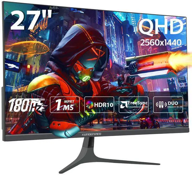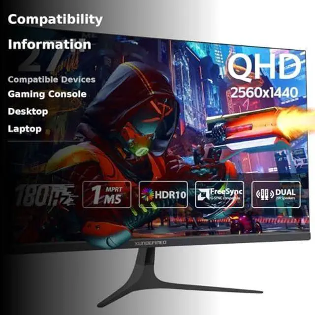 27 inch 1440P Gaming Monitor, 180Hz/144Hz Fast IPS 2K Computer Monitor with Speaker, Free-Sync & G-SYNC, 125% sRGB, HDR10, HDMI x2, DisplayPort x2, Compatible with Switch/Xbox/PS5, VESA Mountable