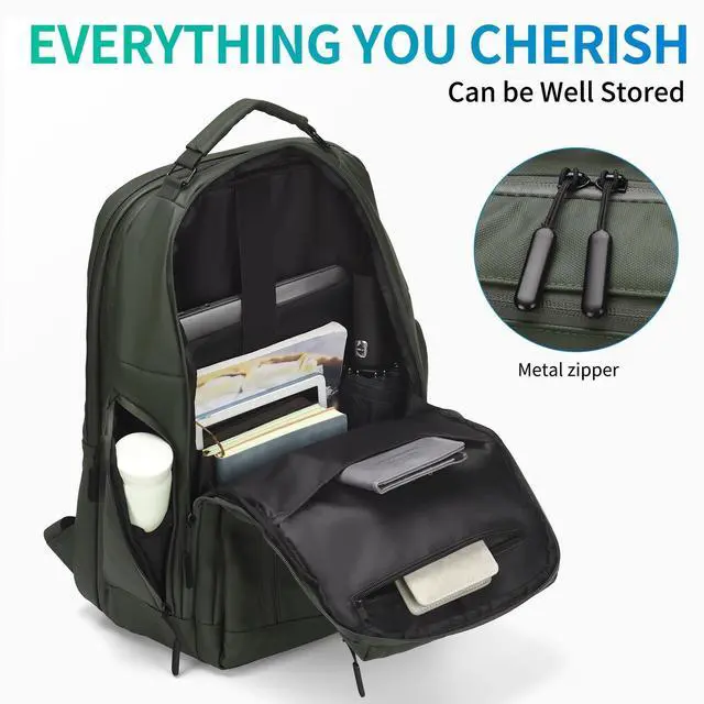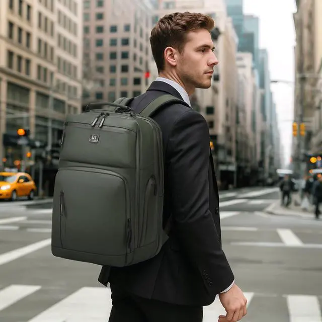 SUIKIHUM Expandable Business Backpack with 17" Laptop Compartment - Waterproof, Airline Approved, 33L-42L Capacity, for Work & Travel, Green