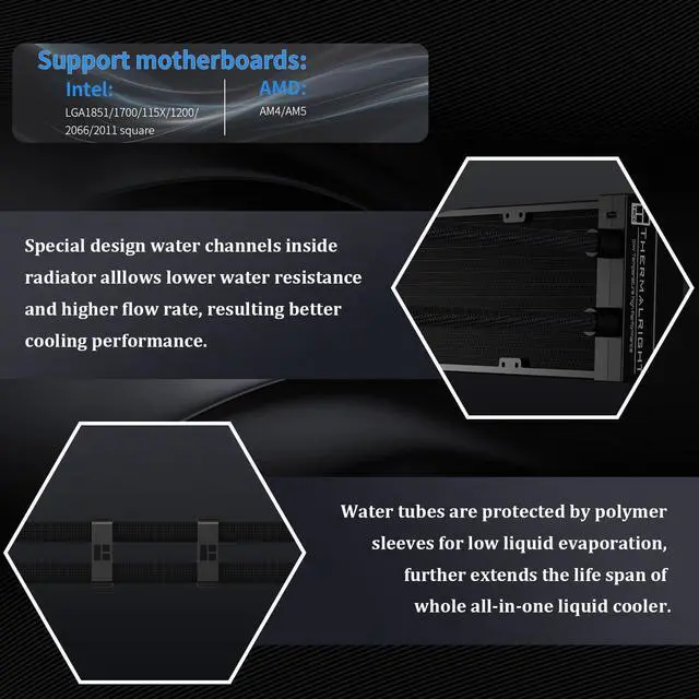[3.5 inch LCD screen]The full-color LCD display of the water cooling radiator is different from other screens, the IPS LCD square screen with 640x480 resolution can accurately restore the color, support DIY various static & dynamic picture switching, TRCC software custom theme, and the large-size LCD