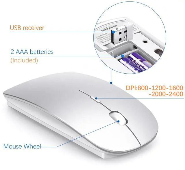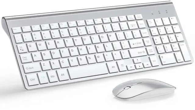 Wireless Keyboard and Mouse Ultra Slim Combo, TopMate 2.4G Silent Compact USB 2400DPI Mouse and Scissor Switch Keyboard Set with Cover, Batteries Included, for PC/Laptop/Windows/Mac - Silver White