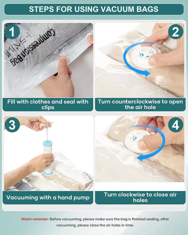 VGCUB Large Travel Backpack with Storage Compression Seal Bags for Clothing with Pump Vacuum System Carry on Personal Item Work Business Vacpack Laptop Backpack for Women Men Peacock Blue