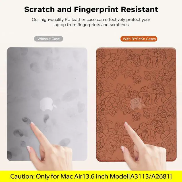 Stylish Aesthetics Design: The embossed case features a distinctive 3D printed design, with a pattern of camellias and PU leather fabric textured to enhance the style of your MacBook. Our careful focus on every detail ensures a fashion and elegant look. The BYCeKe flowers case is beauty and sleek, suitable for any event. You can select from a range of trendy colors for your Mac Air M3 13 inch