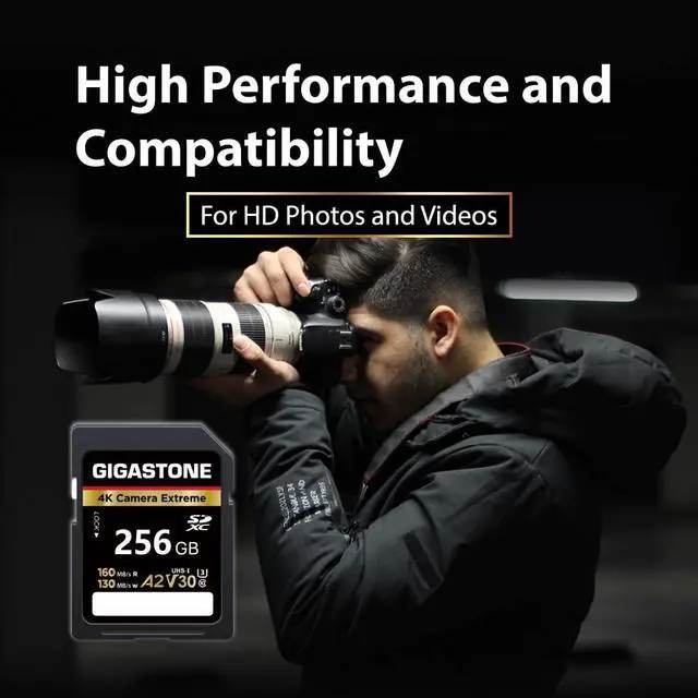 [5-Yrs Free Data Recovery] GIGASTONE 256GB SD Card, 4K Camera Extreme, A2 V30 U3 C10 SDXC Memory Card High Speed, Compatible with Canon Kodak Olympus Digital Camera