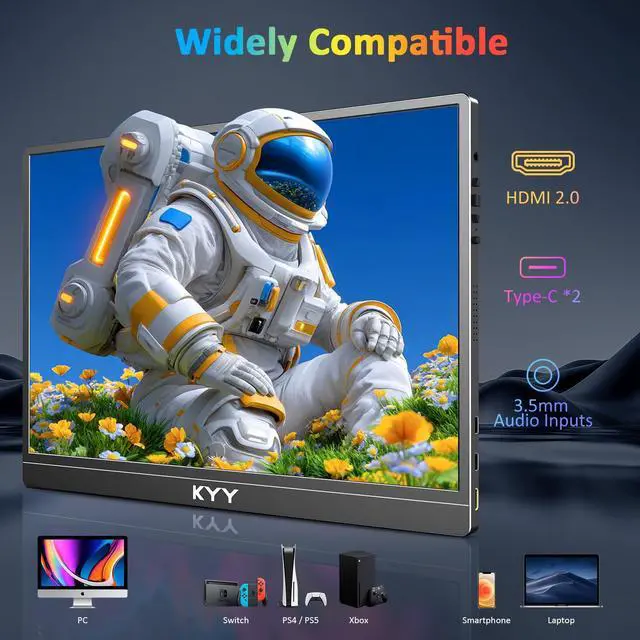 KYY 4K Portable Monitor for Laptop, 15.6 '' Computer Screen Extender UHD 3840x2160, 100% sRGB, 400 Nits, IPS Travel Monitor w/Speakers & Smart Cover for Laptop Xbox PS5 Switch PC Phone, VESA Compatible