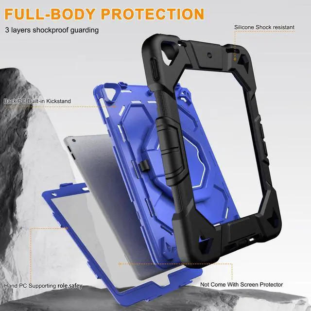 KepaiTok for iPad 9th/8th/7th Generation Case 10.2" Inch with Pen Holder, Handle Shoulder Strap, 360 Rotating Stand Rugged Rugged Protective Case 10.2" Cover for iPad 9th/8th/7th Gen. (Black+Blue)