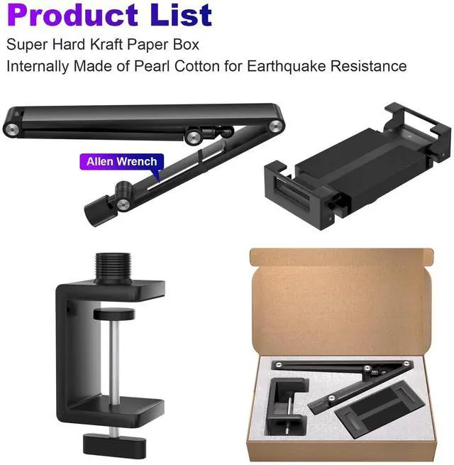 Extended Long ArmThe 3-section long arm tablet stand is easy to install. It offers a longer reach and greater flexibility, making it an ideal helper for using tablets in various scenariossuch as watching movies, playing games, reading, checking recipes, and more.
