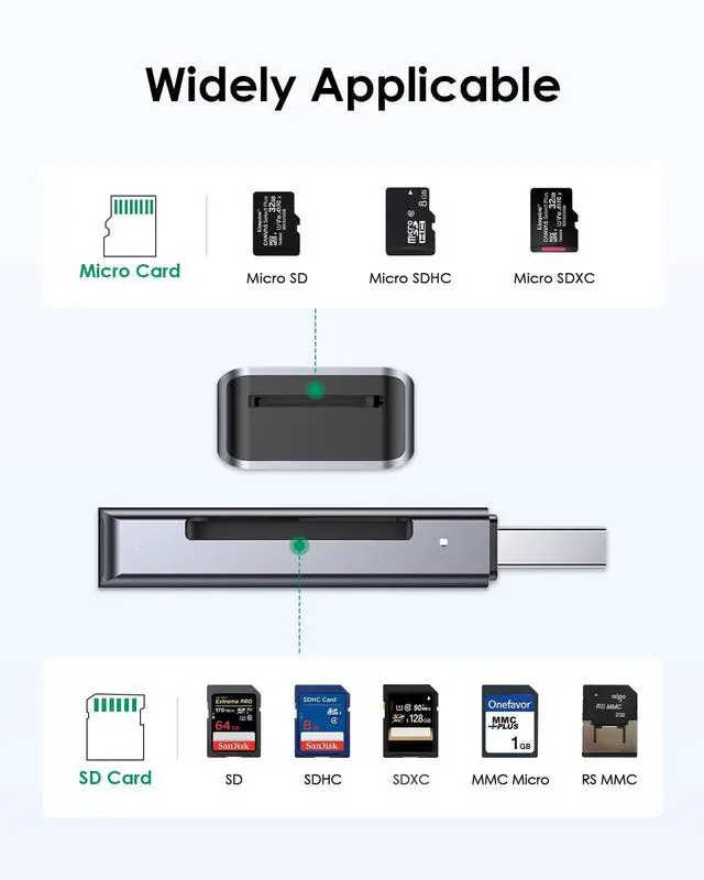 Superior Versatility - Work with almost all types of memory cards including SD/SDHC/SDXC/MicroSD/MicroSDHC/MicroSDXC, backward compatible with more UHS-I memory cards