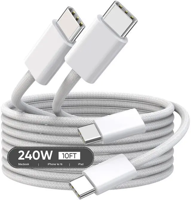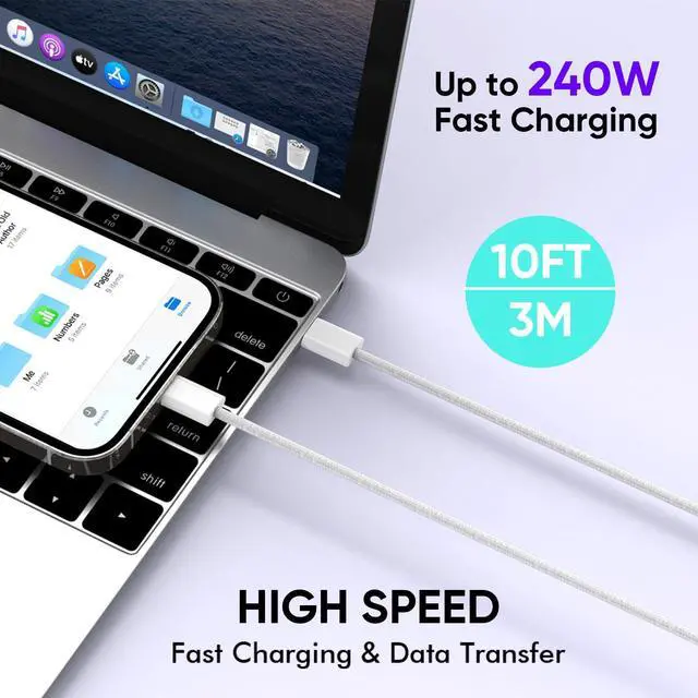 2Pack*240w usb c to usb c cable fast charging cord type c (10ft/10foot/3m)