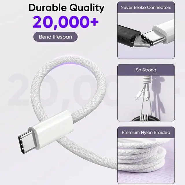 Made of top-rated thicker copper wire and coated with premium soft-touch TPE, tested with over 15000+ times bend to provide 4 times longer lifespan.