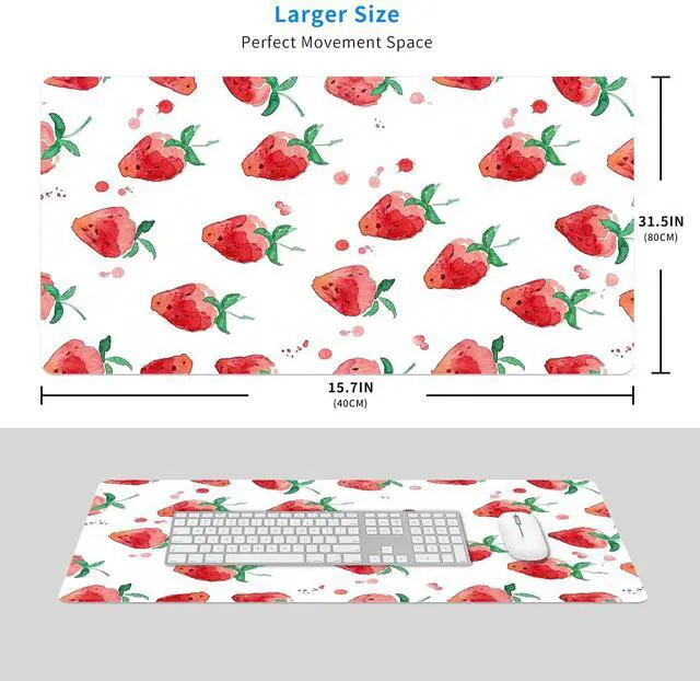 MAYCARI Cute Desk Mat Cartoon Desk Pad Mouse Pad Kawaii Large Strawberry Gaming Mousepad XXL Laptop Keyboard Desktop Writing Pad for Girls Students 31.5"X15.7"