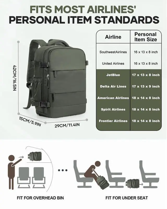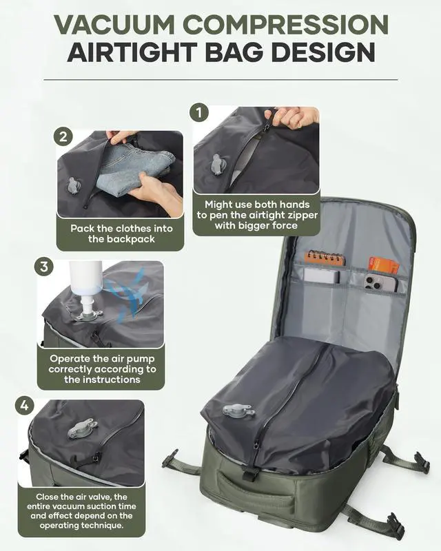 WEPLAN Vacuum Backpack Travel with Pump,Travel Backpack with Vacuum System, Shoe Compartment,United Airlines Personal Item Bag 17x10x9,Mochila compresion al vacio,Brown Green
