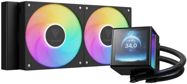 GAMDIAS CHIONE P5-240 Liquid CPU Cooler, 240mm AIO w/Customizable 3.4 '' IPS LCD, Rotatable Magnetic Pump, Hidden Cable Fan (Daisy-Chained), Support PWM & ARGB MB Sync, Intel LGA 1851AMD AM5, Black