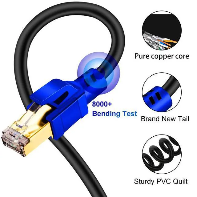 Gold-plated RJ45 connector, more sensitive and stable. 100% pure & thick Copper wires make sure to reach CAT8 Standard. Anti-interference design-- Shielded Foiled Twisted Pair (SFTP) can reduce the interference & signal attenuation effectively. outer PVC jacket, flexible Durable. OD 6.3 mm, easy to network cabling and carry.