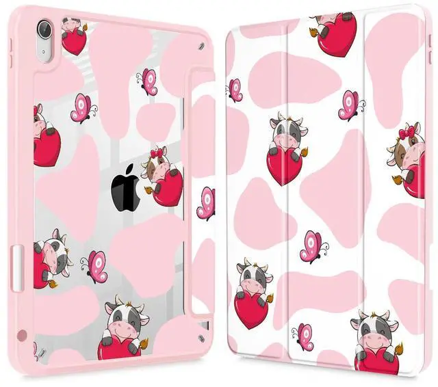 Mektron Case for 2025 iPad 11 inch (A16 Chip) 11th Gen Fit iPad 10th Gen 10.9 inch 2022, Buit in Pencil Holder with Shockproof Cover Clear Shell + Trifold Stand + Auto Wake/Sleep, Butterfly Cow