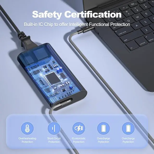 SafetyType-C port output up to 100W Power Delivery enables fast and efficient charging of compatible devices. Multi-Protection;Over Voltage Protection;Short Circuit Protection;CE-/FCC-/RoHS-Certified for safety