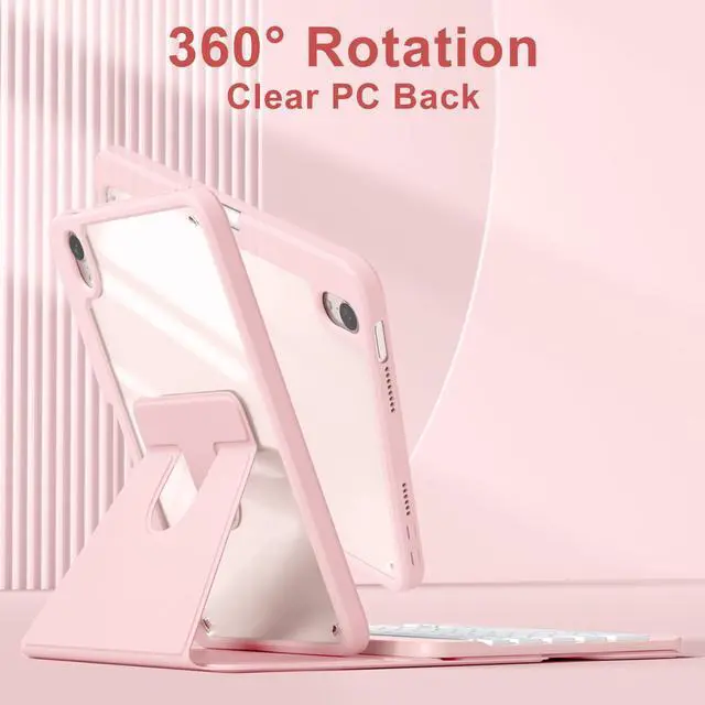 Harvopu for iPad mini 7 A17 Pro/6 Generation Keyboard Case 2024/2021 8.3 Inch,360° Rotating Clear Back Cover with 7 Color Backlit Detachable Keyboard, Pencil Holder for iPad mini 7th/6th Gen,Pink