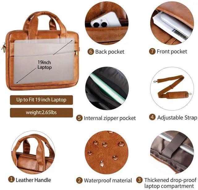 [17.3'' Messenger Bag ] Stuery computer shoulder bag is made of Premium PU leather, not just a computer bag, it can also be a briefcase for men, this handbag is particularly designed for people in business, office work and those who need to carry a laptop and other accessories. The luggage strap can be attached to suitcases, perfectly suitable for your trip