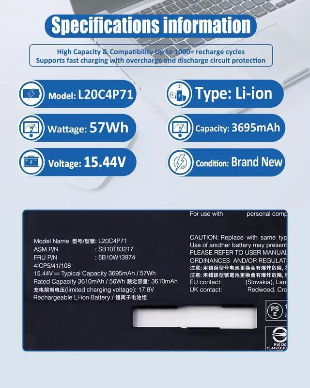 What You Get1x Battery, 1 set Screwdrivers,1 User Manual for L20C4P71 Battery. Offer a 30-day return policy; 12 months free replacement; Email reply within 24 hours.For assistance with the battery, please visit our product detail page.battery comes