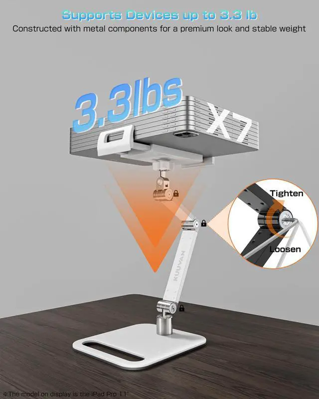 KUUVAN All-Metal Stand -- Crafted with premium aluminum alloy and carbon steel, this versatile stand features a 3.3 lbs load capacity, 31.5" 104" height adjustability, and 3-axis design for seamless vertical/horizontal positioning. Ideal for 4.717. 3" devices, it combines a sleek, durable all-metal build with desk-protecting sponge padding to elevate workspace efficiency and aesthetics.