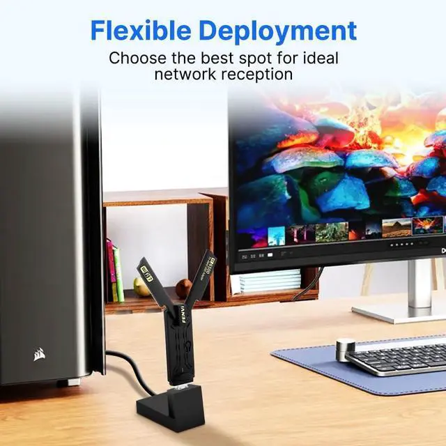 Fenvi WiFi 7 USB Adapter Universal CompatibilityUpgrade any PC or laptop with a USB port works with WiFi 7/6E/6/5 routers and backward-compatible with older networks.
