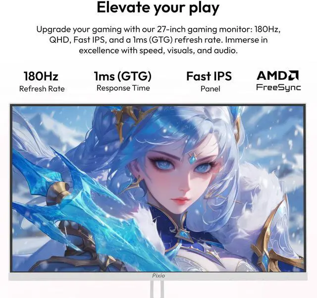 Pixio PX278 Wave White 27 inch 180Hz Refresh Rate QHD 1440p Resolution Fast IPS Panel 1ms GTG Response Time White Gaming Monitor with FreeSync