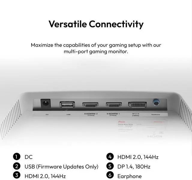 Supports both HDMI and DisplayPort - There is one connection for DisplayPort 1.4 at 1440p@180Hz and two for HDMI 2.0 at 1440p@144Hz. This assures maximum compatibility for PC desktops, laptops, consoles, or any device that supports DisplayPort or HDMI. ^