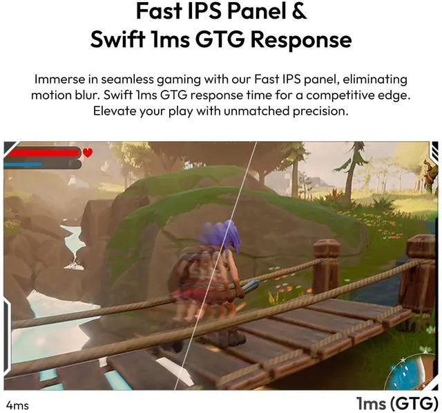 Lightening-Fast 1ms Response time - See your actions come to life instantly with a remarkable 1ms response time. No more frustrating ghosting or trailing, just pure, unadulterated speed that gives you the edge in competitive gaming.